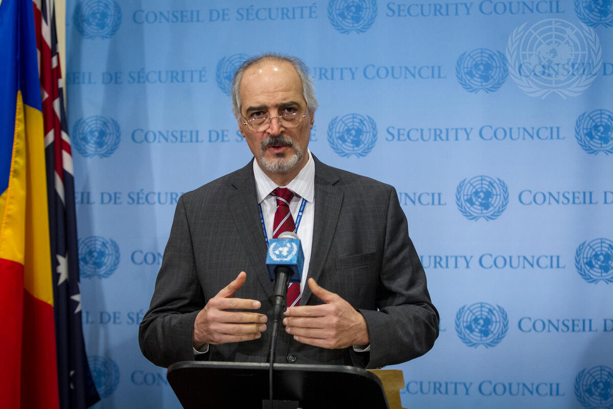 Bashar Ja’afari, Permanent Representative of the Syrian Arab Republic to the UN, speaks to journalists on the sidelines of the Security Council consultations on the Middle East.