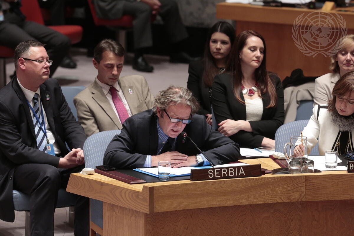 Milan Milanovic, Permanent Representative of the Republic of Serbia to the UN, addresses the Security Council meeting on the situation in Bosnia and Herzegovina.