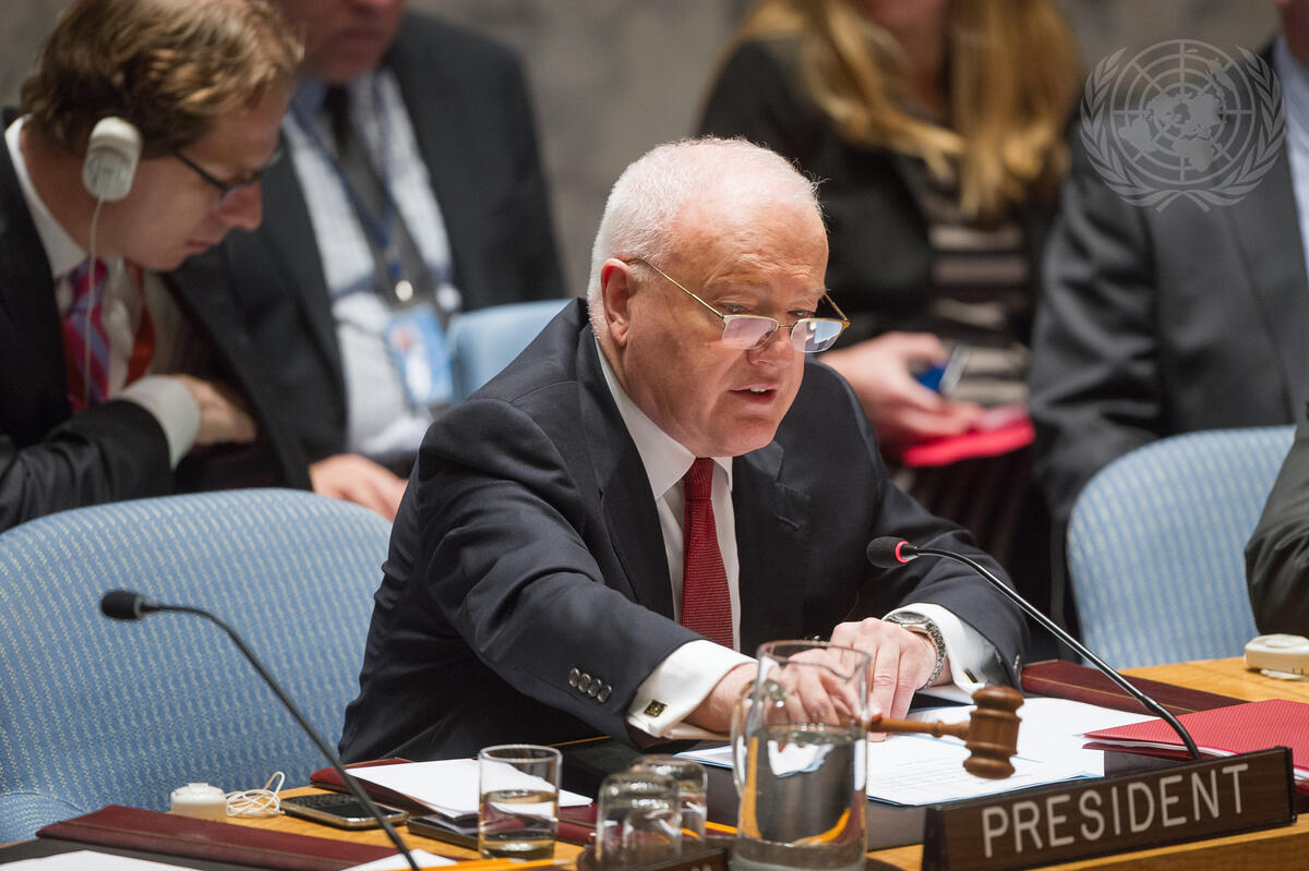 Gary Quinlan, Permanent Representative of Australia to the UN and President of the Security Council for November, during the Council meeting on the situation in the Middle East, including the Palestinian question.