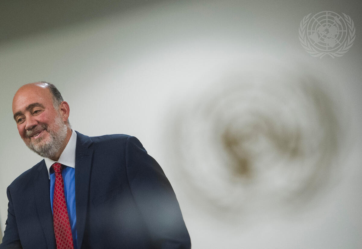 Ron Prosor, Permanent Representative of Israel to the UN, speaks to journalists.