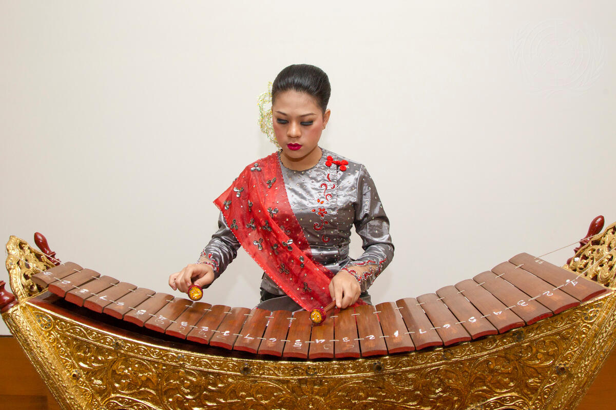 A musician plays a traditional bamboo xylophone, or pattalar, at the opening of the 25th ASEAN Summit in Myanmar.