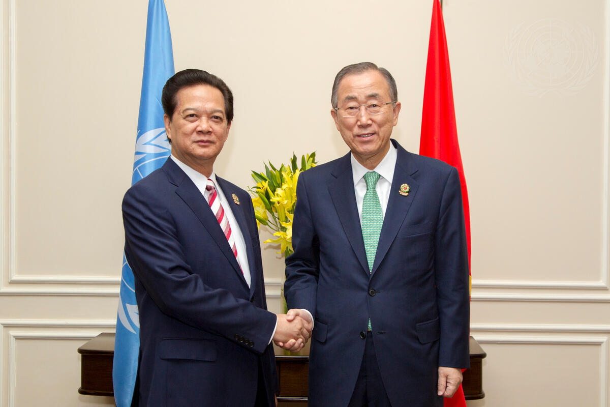 Secretary-General Ban Ki-moon (right) meets with Nguyen Tan Dung, Prime Minister of the Socialist Republic of Viet Nam, in Nay Pyi Taw, Myanmar.