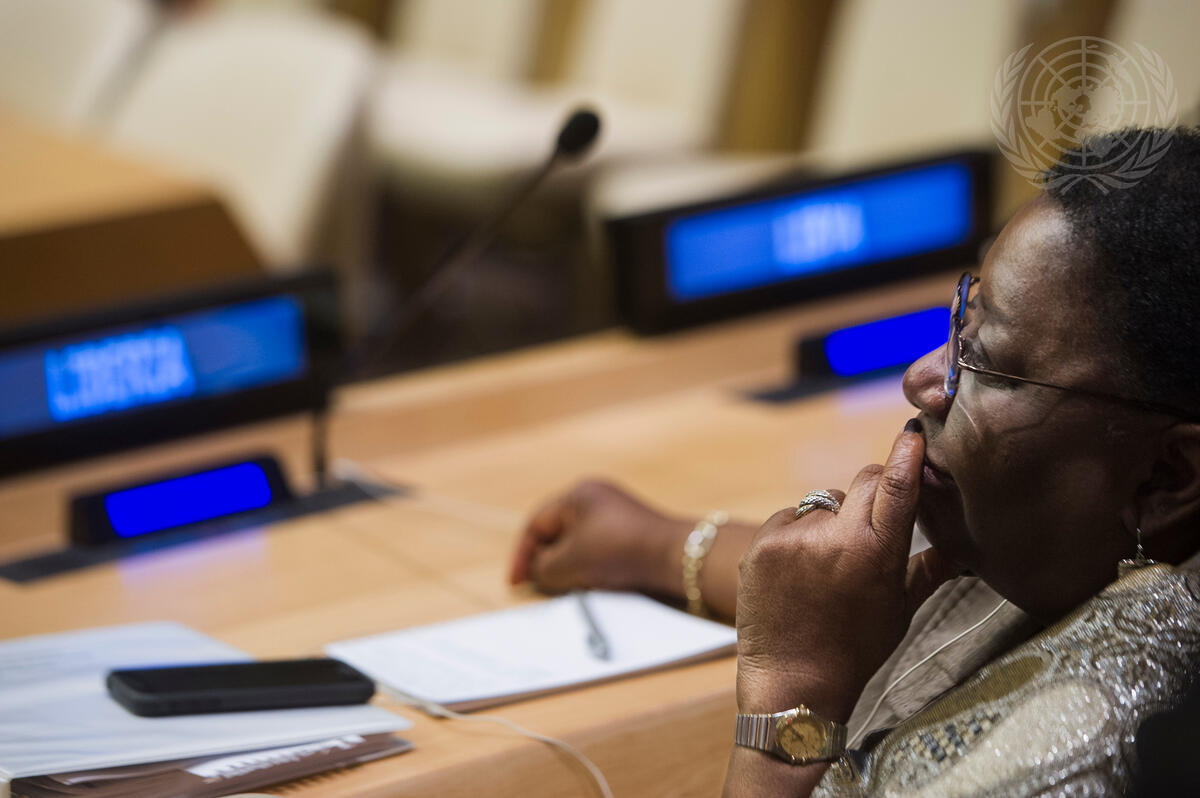Marjon V. Kamara, Permanent Representative of the Republic of Liberia to the UN, during the briefing.
