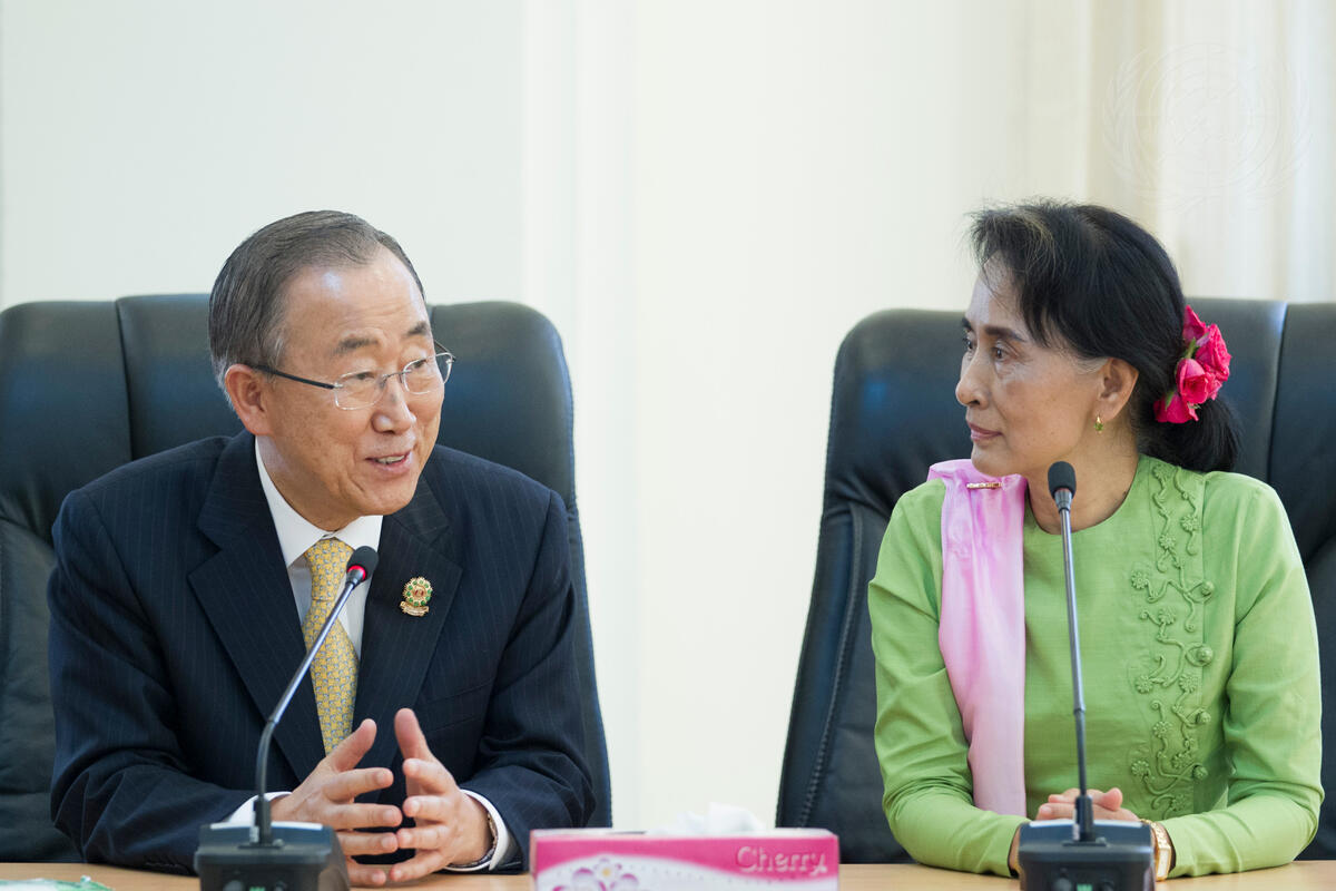 Secretary-General Ban Ki-moon (left) meets with Aung San Suu Kyi, Chairperson of Myanmar’s National League for Democracy (NLD).