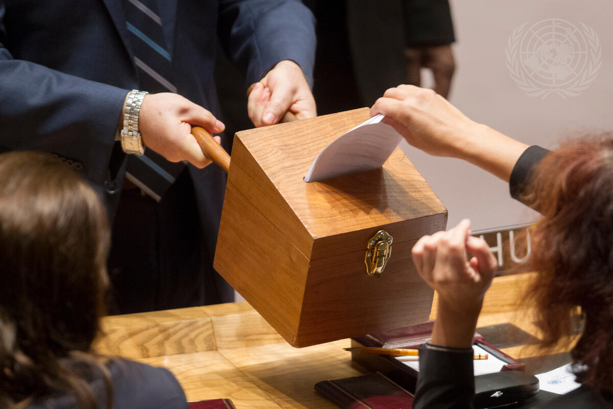 Raimonda Murmokaite (right), Permanent Representative of Lithuania to the UN, casts her country’s ballot in the Security Council.