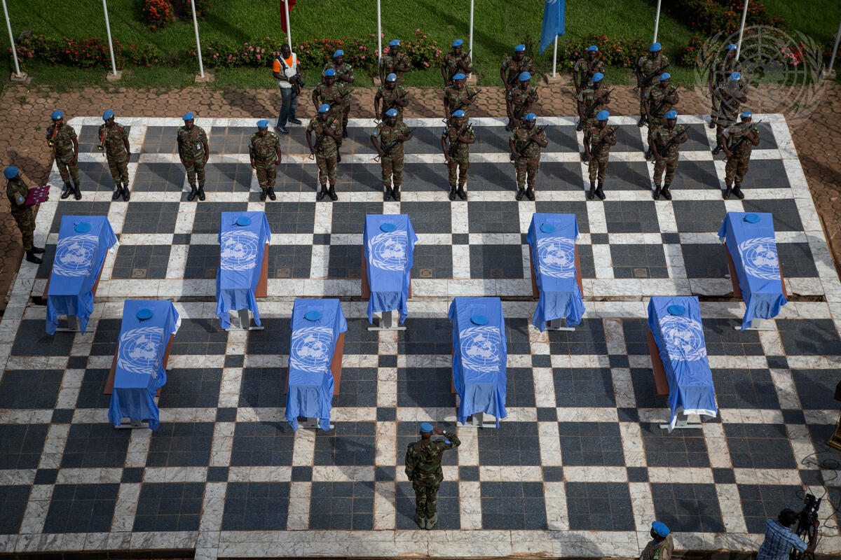 The UN Multidimensional Integrated Stabilization Mission in Mali (MINUSMA) holds a memorial ceremony for nine Nigerien peacekeepers of the Mission who were killed in a targeted ambush against a MINUSMA convoy on the road between Ansongo and Menaka, Mali, on 3 October 2014.