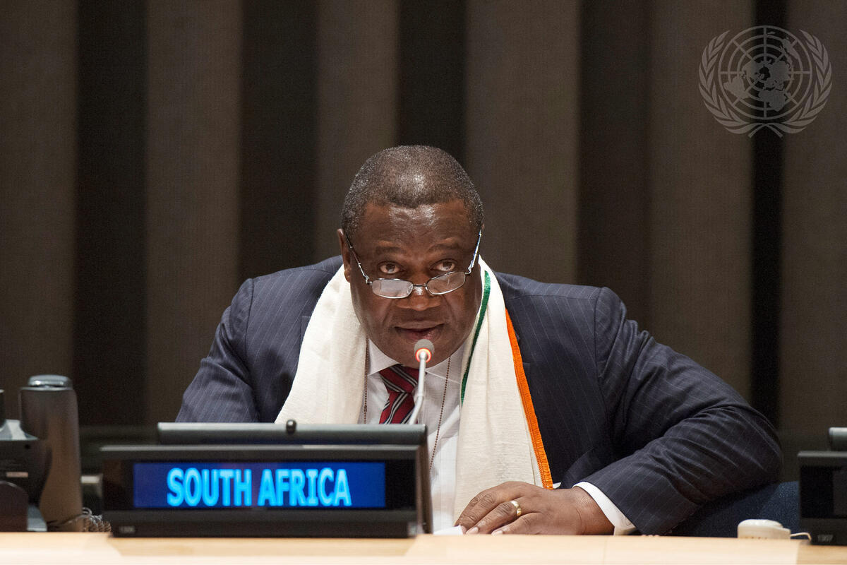 Jeremiah Nyamane Kingsley Mamabolo, Permanent Representative of the Republic of South Africa to the UN, speaks at the special event marking the International Day of Non-Violence, organized by the Permanent Mission of India to the UN. The Day of Non-Violence is observed on 2 October, the birthday of Mahatma Gandhi, leader of the Indian independence movement and pioneer of the non-violence philosophy, as an occasion to disseminate the message of non-violence.