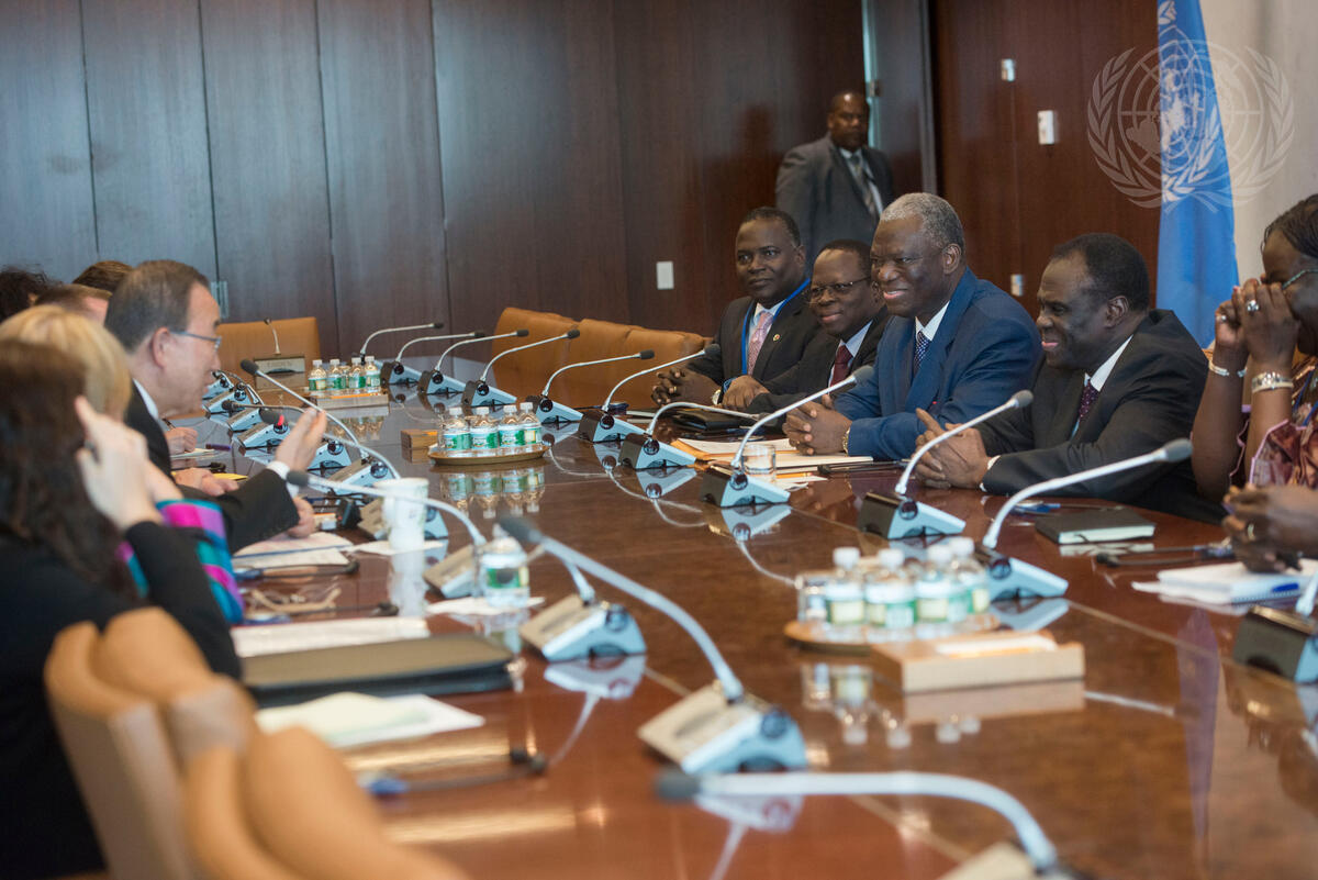 Secretary-General Ban Ki-moon (third from left) meets Michel Kafando (second from right), Transitional President of Burkina Faso.