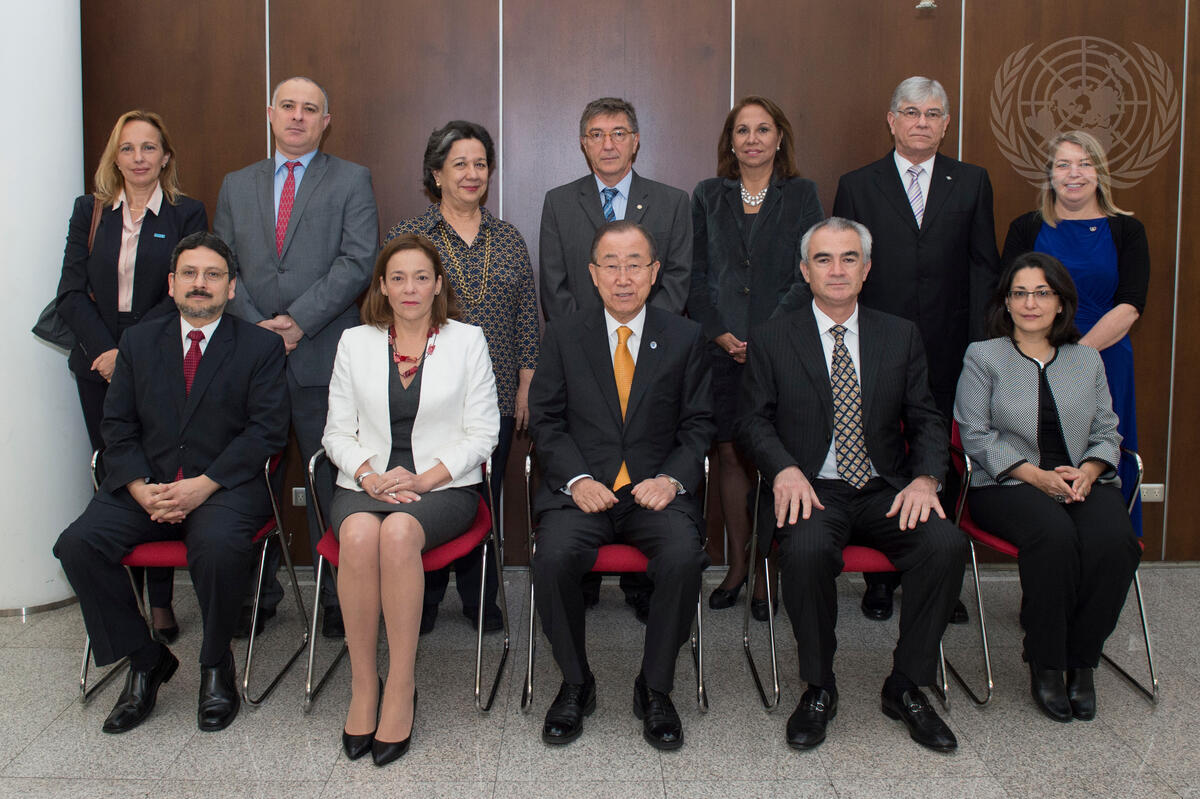 Secretary-General Ban Ki-moon (seated centre) poses for a group photo with members of the the United Nations Country Team serving in Peru.