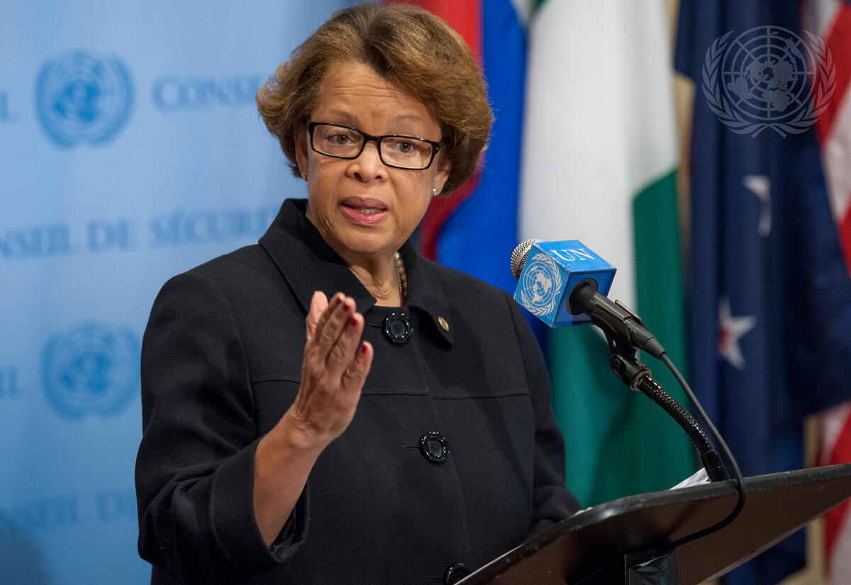 Sandra Honoré, Special Representative of the Secretary-General and Head of the United Nations Stabilization Mission in Haiti (MINUSTAH), speaks to journalists, following a Security Council meeting on that country.