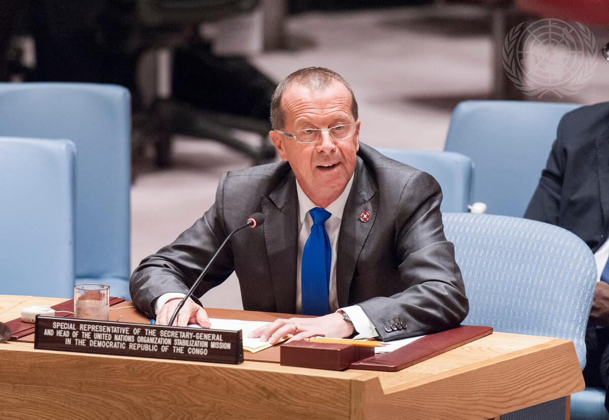 Martin Kobler, Special Representative of the Secretary-General and Head of the UN Organization Stabilization Mission in the Democratic Republic of the Congo (MONUSCO), briefs the Security Council at its meeting on the situation concerning that country.
