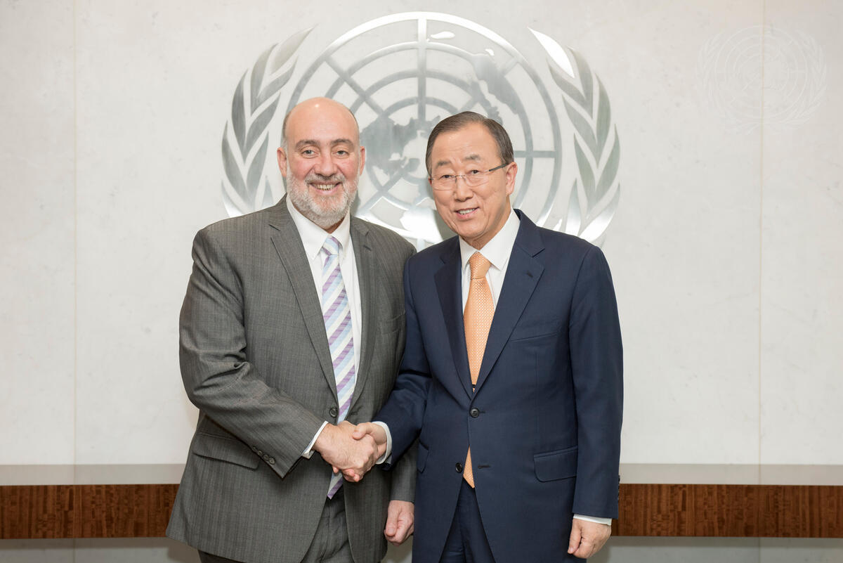 Ron Prosor (left), outgoing Permanent Representative of Israel to the United Nations, pays a farewell call on Secretary-General Ban Ki-moon.