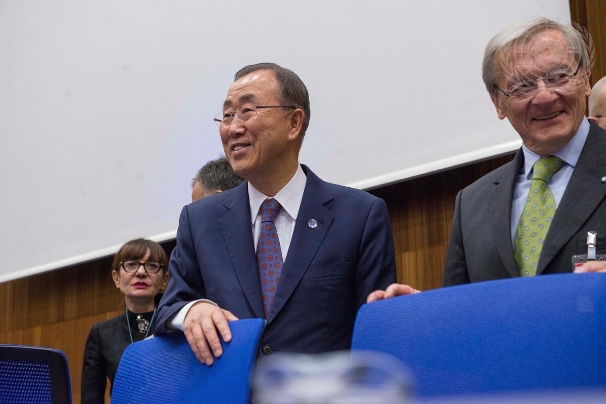 Secretary-General Ban Ki-moon addressed the high-level thematic roundtable of the UN Conference on Landlocked Developing Countries, “Achieving Structural Transformation of LLDC Economies”. Mr. Ban (left) at the roundtable with Wolfgang Schüssel, President of the United Nations Association of Austria (UNA-Austria) and former Chancellor of Austria.
