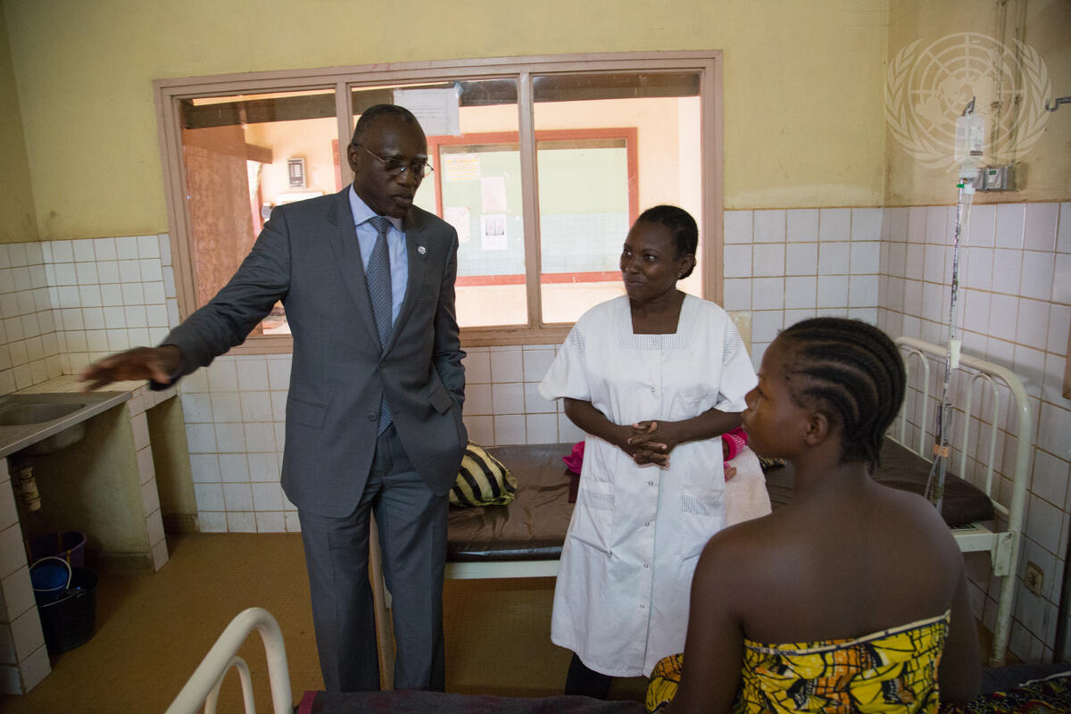 Babacar Gaye (left), Special Representative of the Secretary-General and Head of the UN Multidimensional Integrated Stabilization Mission in the Central African Republic (MINUSCA), visits the Bangui Hospital.