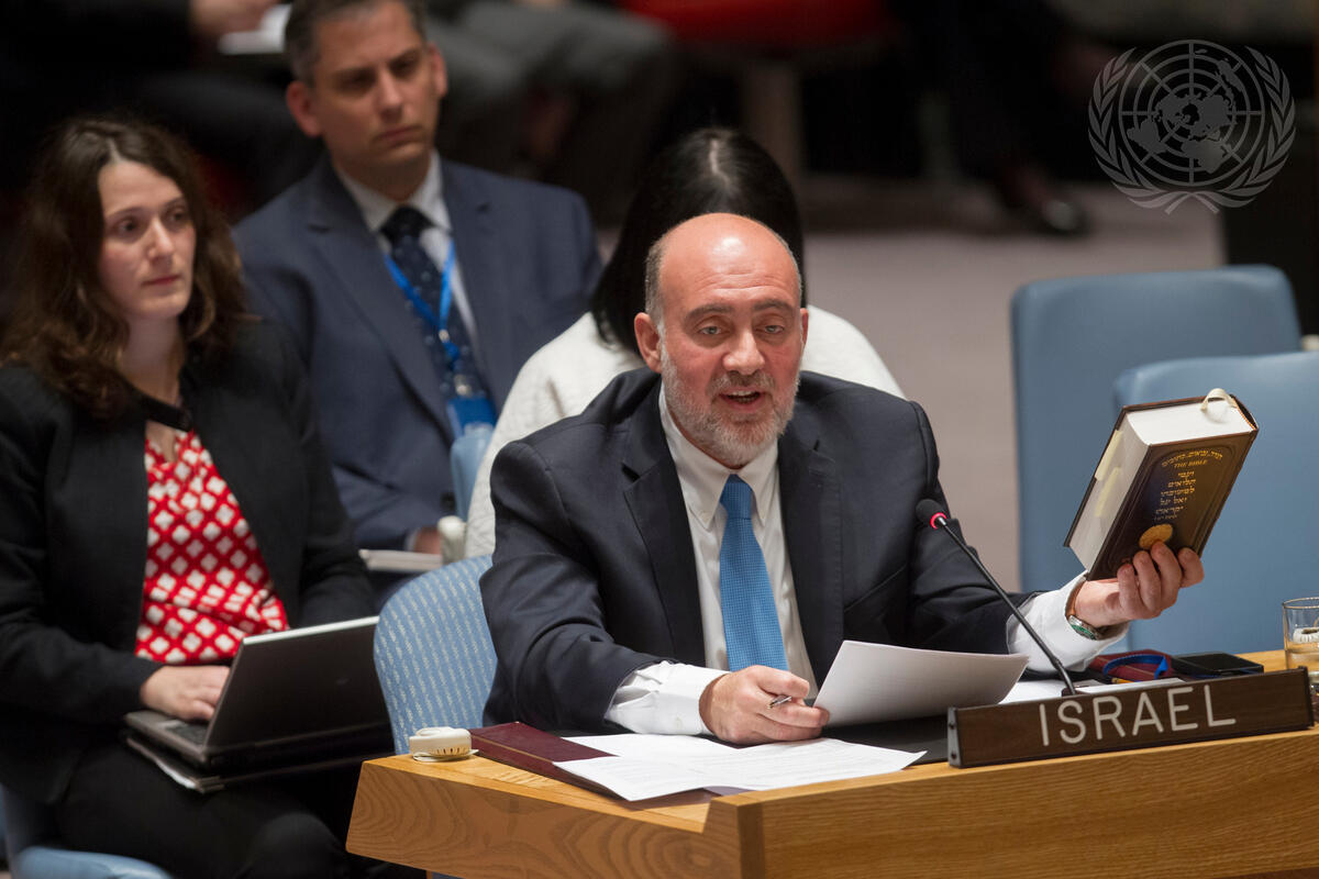Ron Prosor, Permanent Representative of Israel to the UN, addresses the Security Council meeting on the situation in the Middle East, including the Palestinian question.
