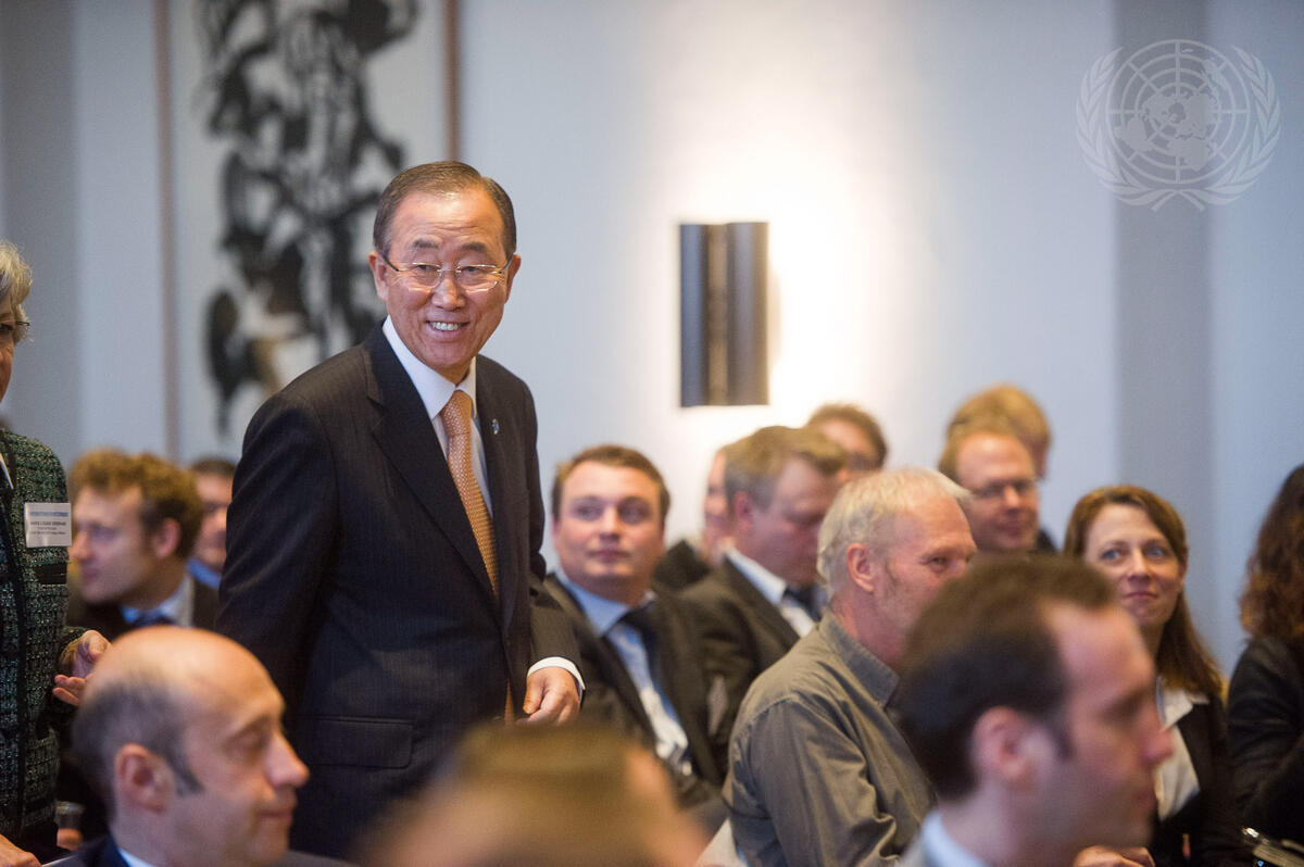 Secretary-General Ban Ki-moon arrives to deliver the keynote address at the opening session of the Copenhagen Energy Security Dialogues, in Denmark.