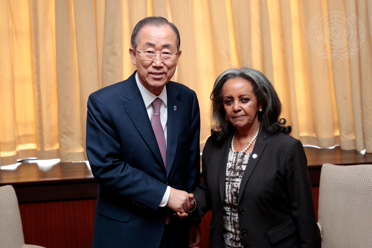 Secretary-General Ban Ki-moon (left) meets with Sahle-Work Zewde, Director-General of the United Nations Office at Nairobi (UNON).