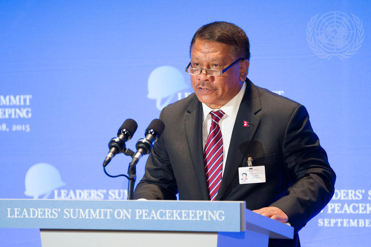Prakash Man Singh, Deputy Prime Minister of the Federal Democratic Republic of Nepal, addresses the Leaders' Summit on Peacekeeping. Leaders of more than 50 countries gathered for the Summit to pledge new commitments and strengthen existing capabilities.