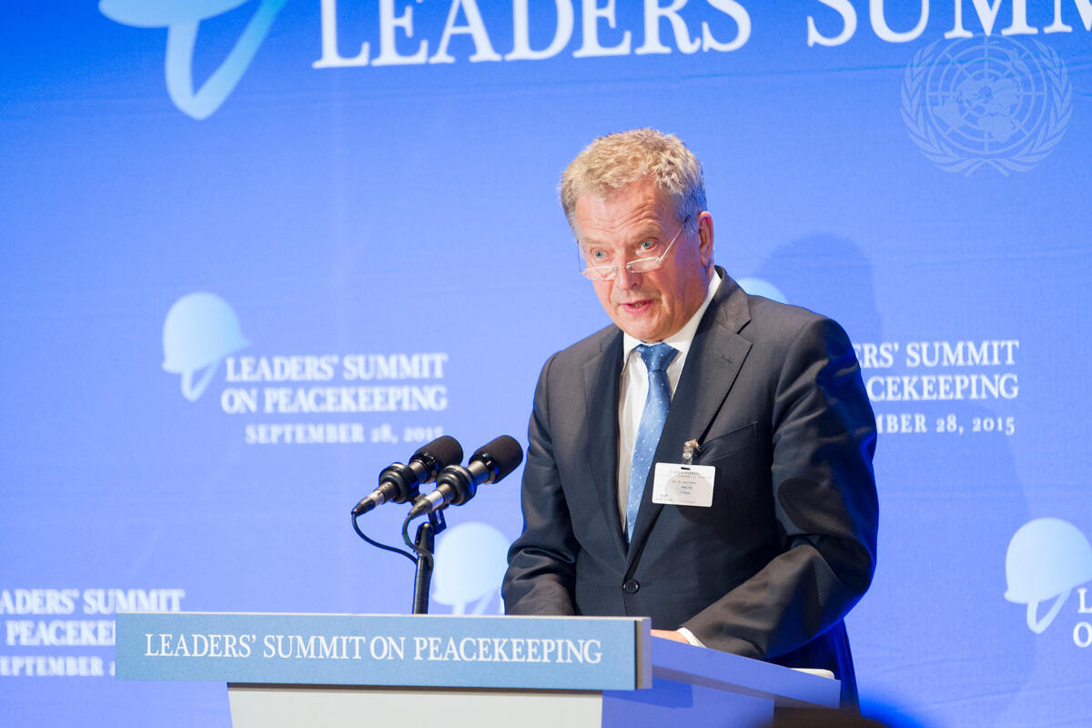Sauli Niinistö, President of Finland, addresses the Leaders' Summit on Peacekeeping. Leaders of more than 50 countries gathered for the Summit to pledge new commitments and strengthen existing capabilities.