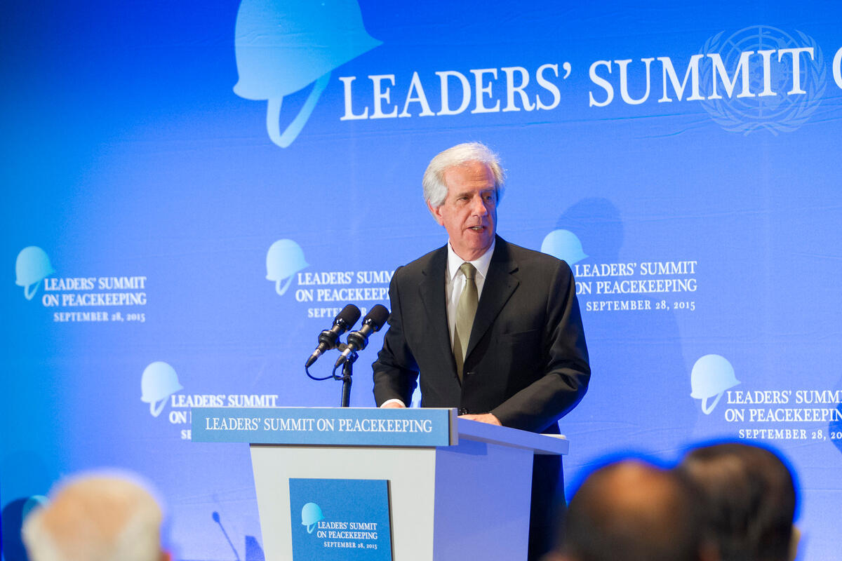 Tabaré Vázquez, President of Uruguay, addresses the Leaders' Summit on Peacekeeping. Leaders of more than 50 countries gathered for the Summit to pledge new commitments and strengthen existing capabilities.