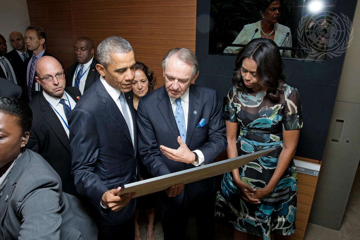 Deputy Secretary-General (second from right) with United States President Barack Obama and First Lady Michelle Obama, ahead of the President’s address to the general debate of the General Assembly’s seventieth session.