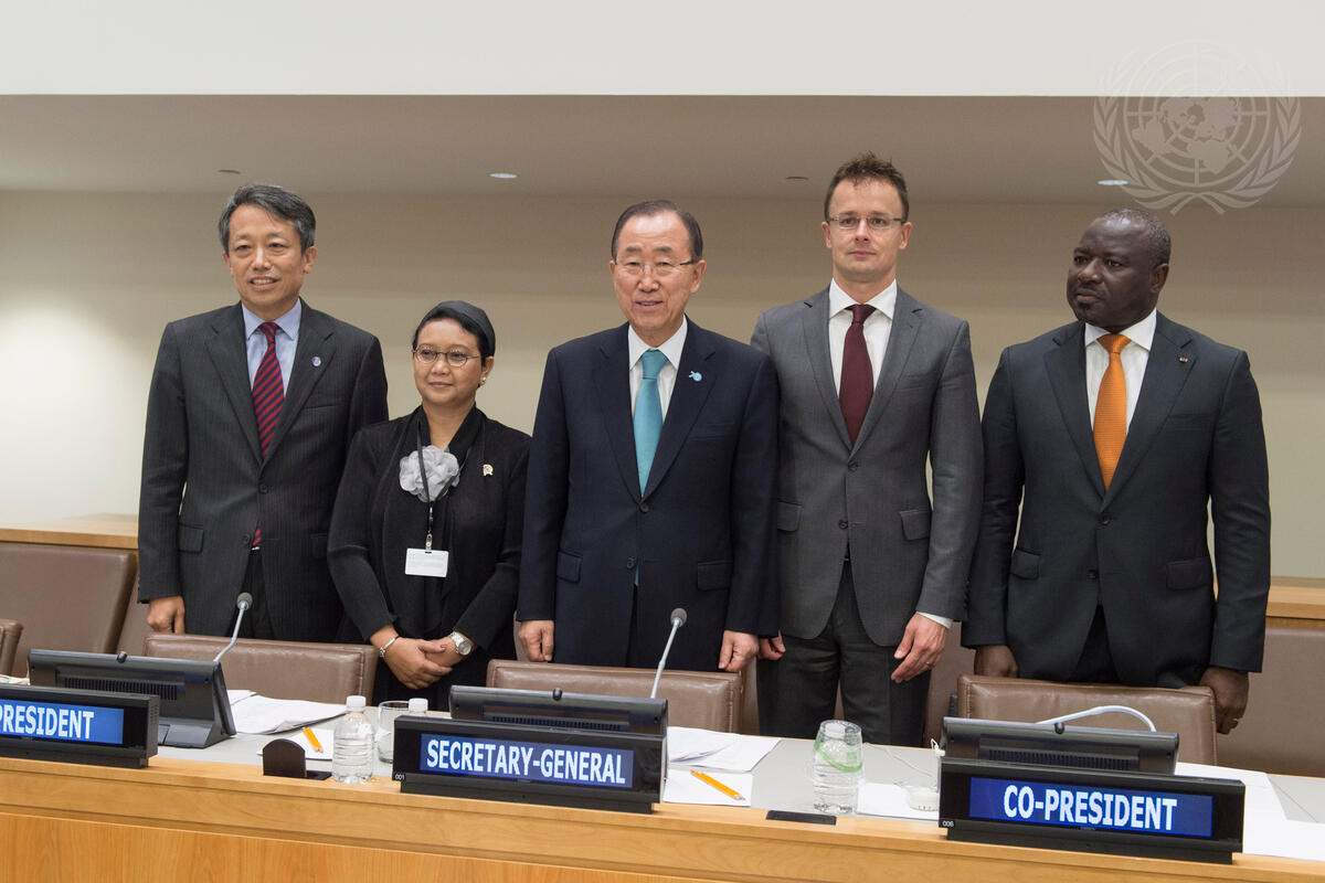 Also pictured are, from left: Kim Won-soo, Acting UN High Representative for Disarmament Affairs; Retno Lestari Priansari Marsudi, Minister for Foreign Affairs of the Republic of Indonesia; and Lassina Zerbo, Executive Secretary of the Preparatory Commission for the Comprehensive Nuclear-Test-Ban Treaty Organization (CTBTO).