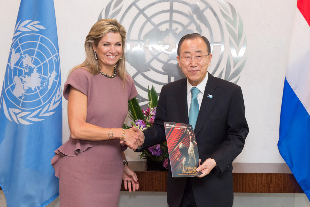 Secretary-General Ban Ki-moon (right) meets with Queen Máxima of the Netherlands.