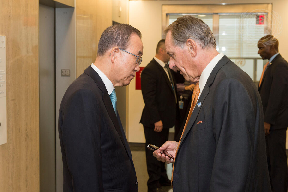 Secretary-General Ban Ki-moon (right) meets with Deputy Secretary-General Jan Eliasson.