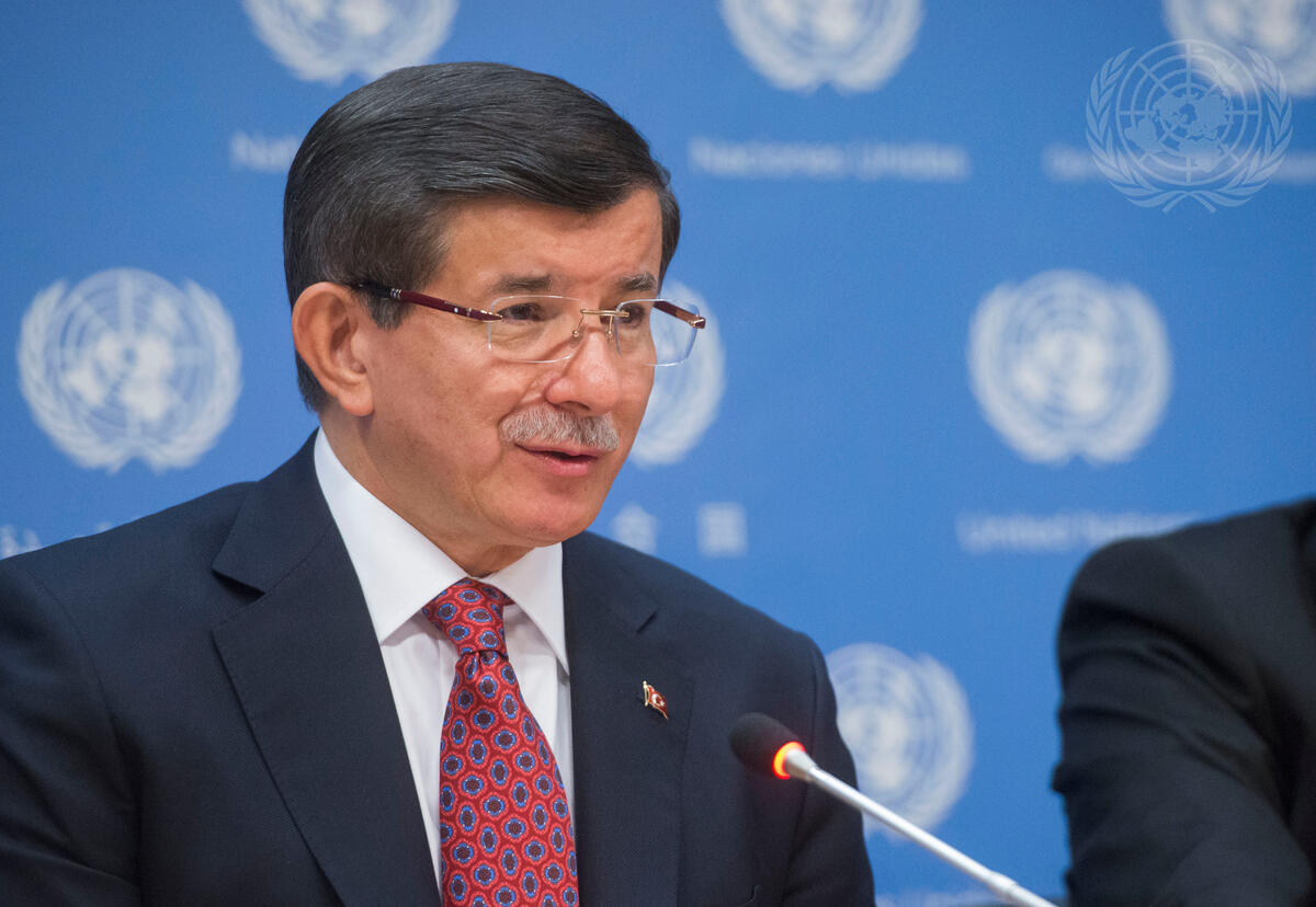 Ahmet Davutoglu, Prime Minister of Turkey, addresses a press conference at UN headquarters on the margins of the General Assembly’s general debate.