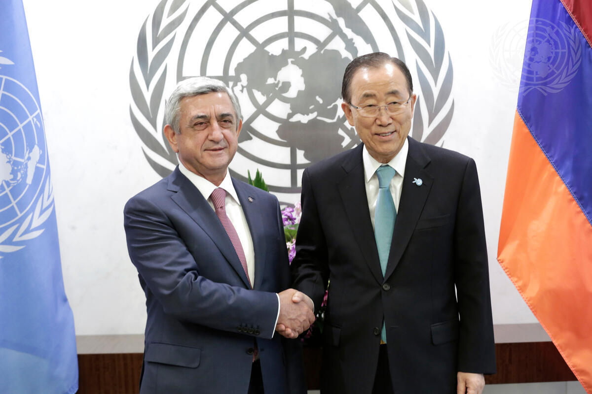 Secretary-General Ban Ki-moon (right) meets with Serzh Sargsyan, President of the Republic of Armenia.