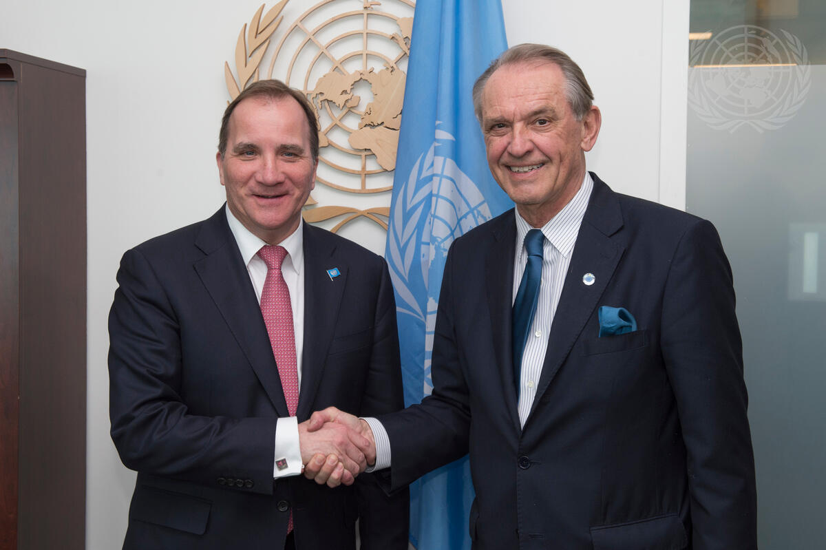 Deputy Secretary-General Jan Eliasson (right) meets with Stefan Löfven, Prime Minister of Sweden.
