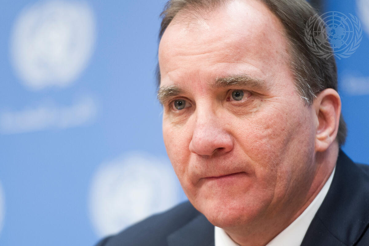 Stefan Löfven, Prime Minister of Sweden, addresses a press conference on the Economic and Social Council (ECOSOC) high-level integration segment on achieving sustainable development through employment creation and decent work.
