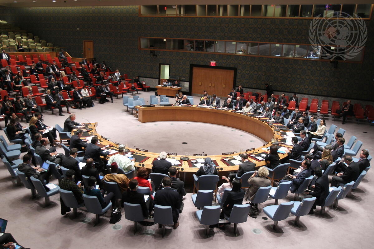 A wide view of the Security Council meeting on the Middle East situation, including the Palestinian question.