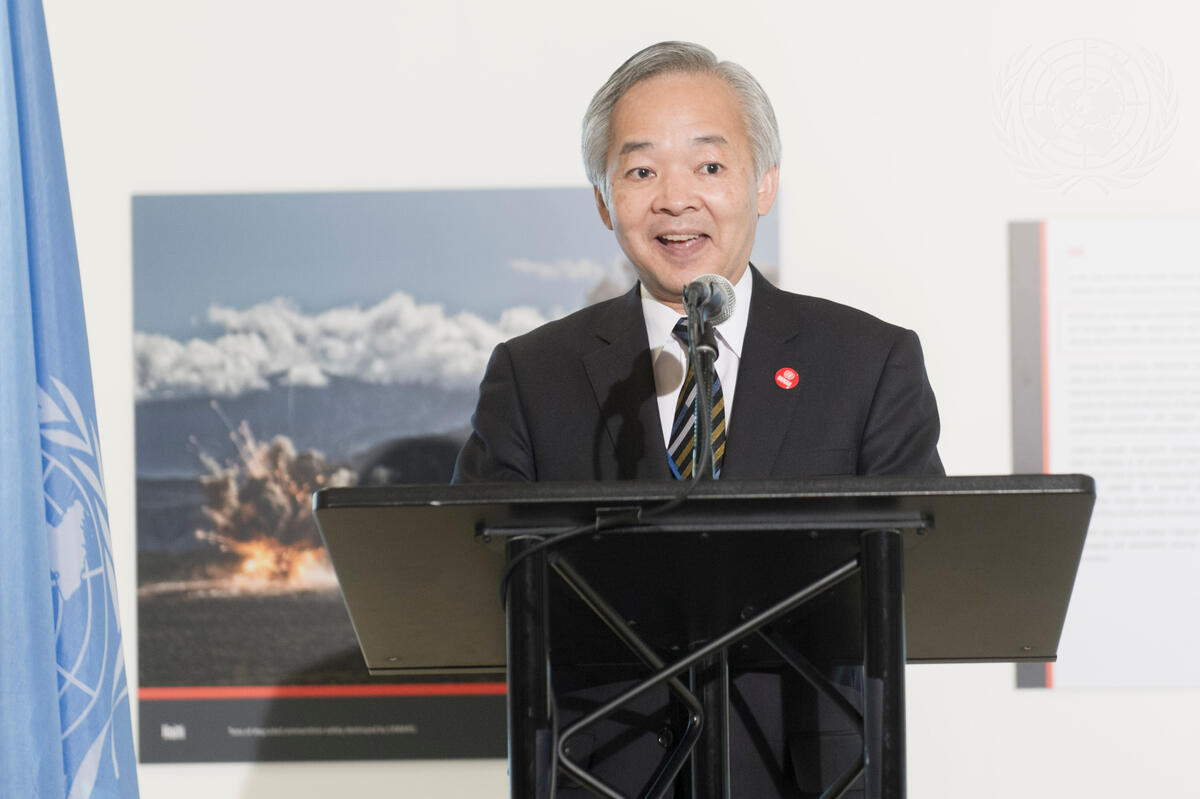 Yoshifumi Okamura, Deputy Permanent Representative of Japan to the UN, speaks at the opening of an exhibit entitled, “More than Mines”, on the occasion of the International Day for Mine Awareness and Assistance in Mine Action (4 April).
