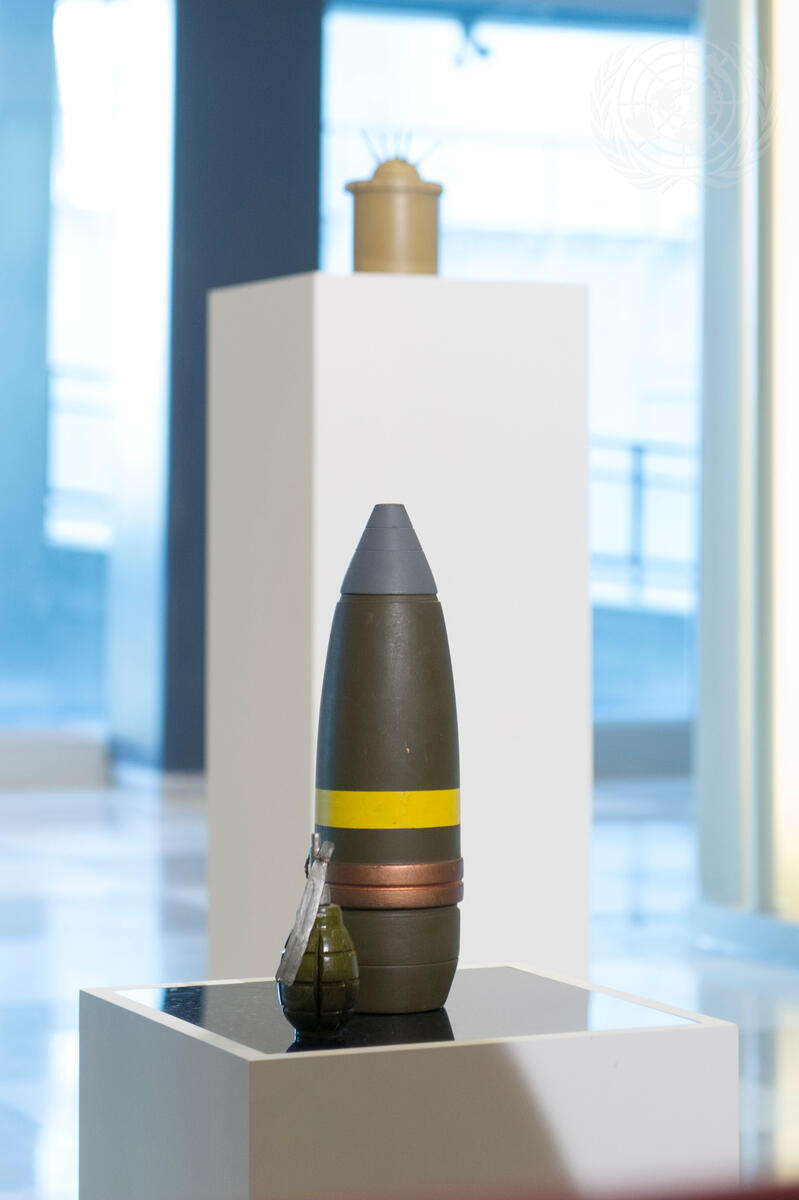 Items on display at an exhibit entitled, “More than Mines”, which opened at UN headquarters on 2 April, on the occasion of the International Day for Mine Awareness and Assistance in Mine Action (4 April).