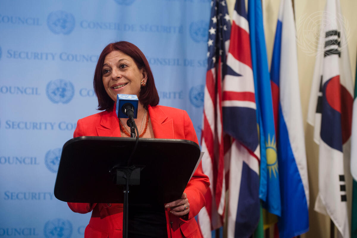 María Cristina Perceval, Permanent Representative of Argentina to the UN and President of the Security Council for October, issues a Council press statement condemning in the strongest terms the 9 October bomb attack in Sana’a, Yemen, which killed at least forty seven people, including children. Council members also condemned the continued attacks against Yemeni security forces in Hadramawt on October 9, as well as in Bayda on October 8, aimed at undermining Yemen’s stability.