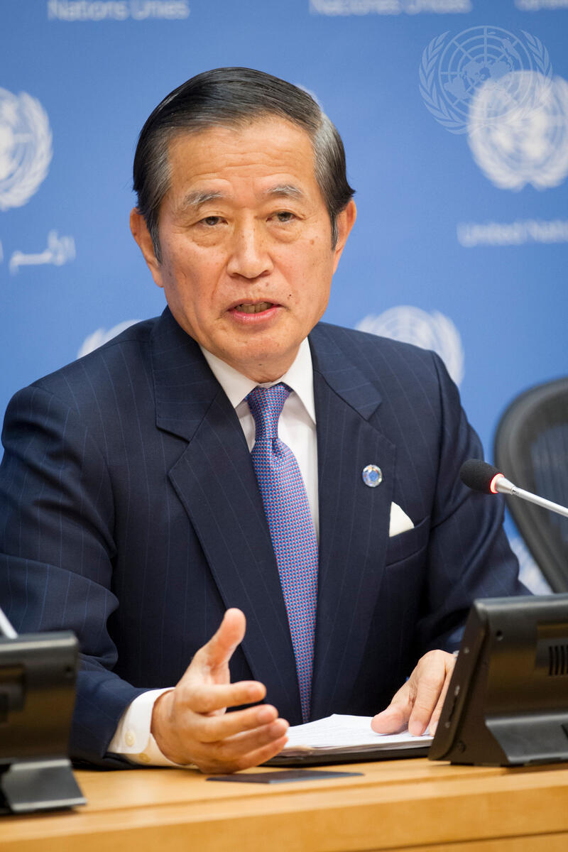 Yukio Takasu, Under-Secretary-General for Management, briefs the press on the financial situation of the Organization.