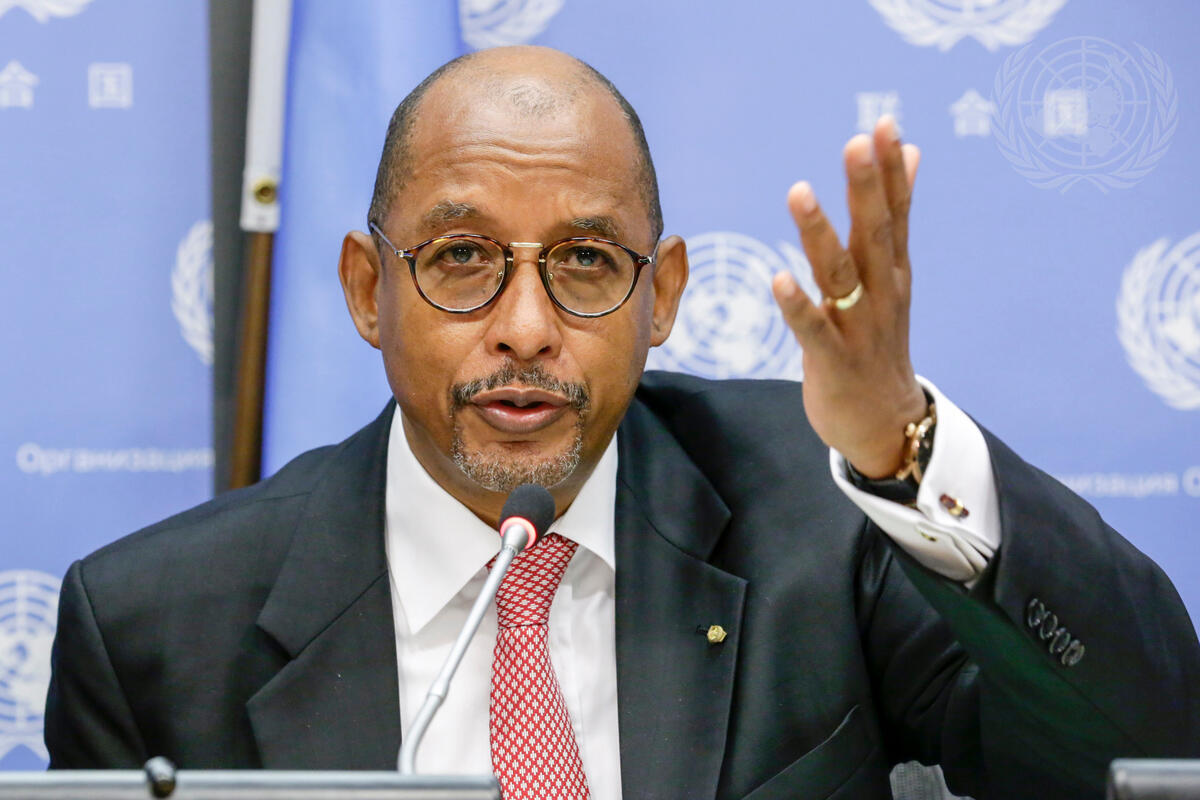 Ibrahim Assane Mayaki, Chief Executive Officer of the African Union’s NEPAD (New Partnership for Africa's Development) Planning and Coordinating Agency and Interim Chief Executive Officer of the African Peer Review Mechanism Secretariat, addresses a press conference on this year’s “Africa Week” at the UN (13-17 October), which occurs on the margins of the General Assembly’s debate on the continent.