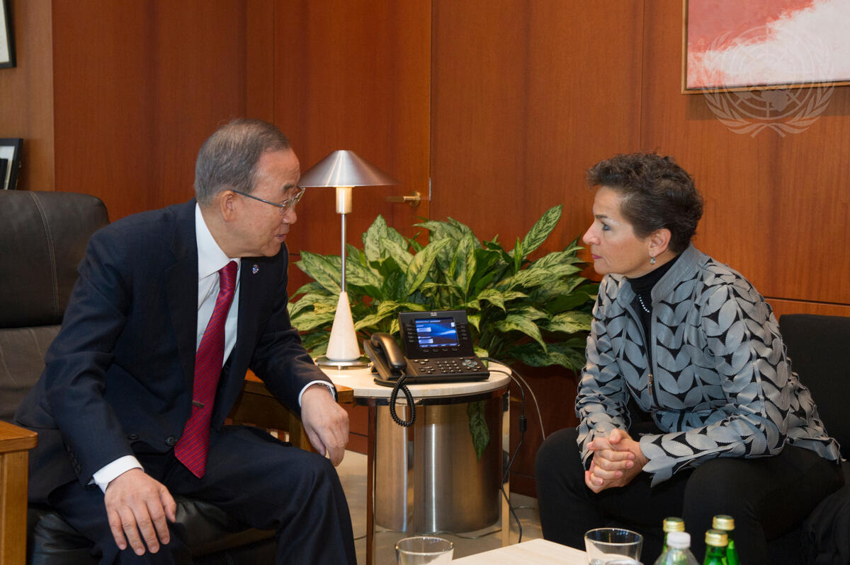 Secretary-General Ban Ki-moon (left) meets with Christiana Figueres, Executive Secretary of the UN Framework Convention on Climate Change (UNFCCC).