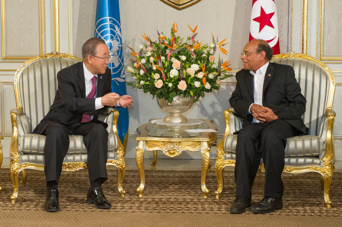 Secretary-General Ban Ki-moon (left) meets with Mohamed Moncef Marzouki, President of Tunisia, in Tunis.