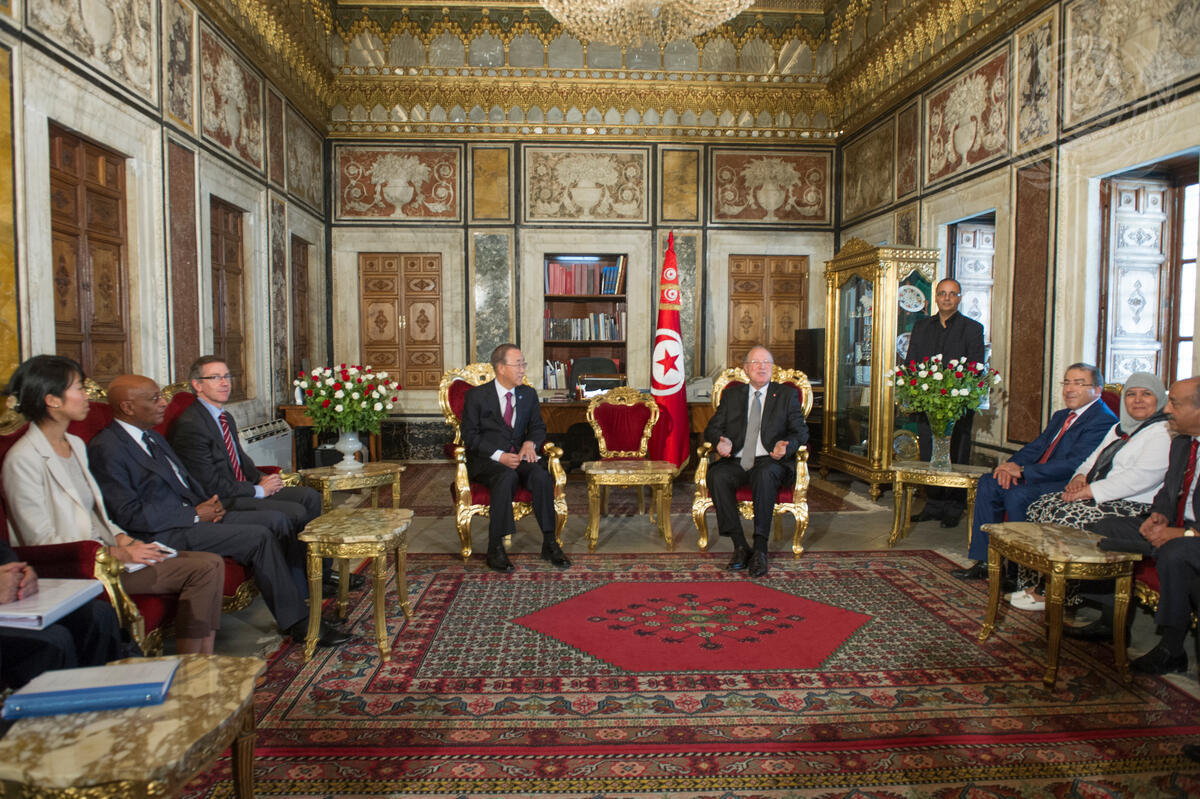 Secretary-General Ban Ki-moon (centre left) meets with Mustapha Ben Jaafar (centre right), President of the National Constituent Assembly of Tunisia.