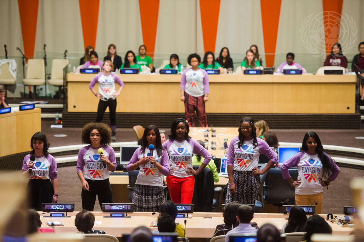 A view of the Economic and Social Council (ECOSOC) Chamber, with young girls at centre stage during the event.