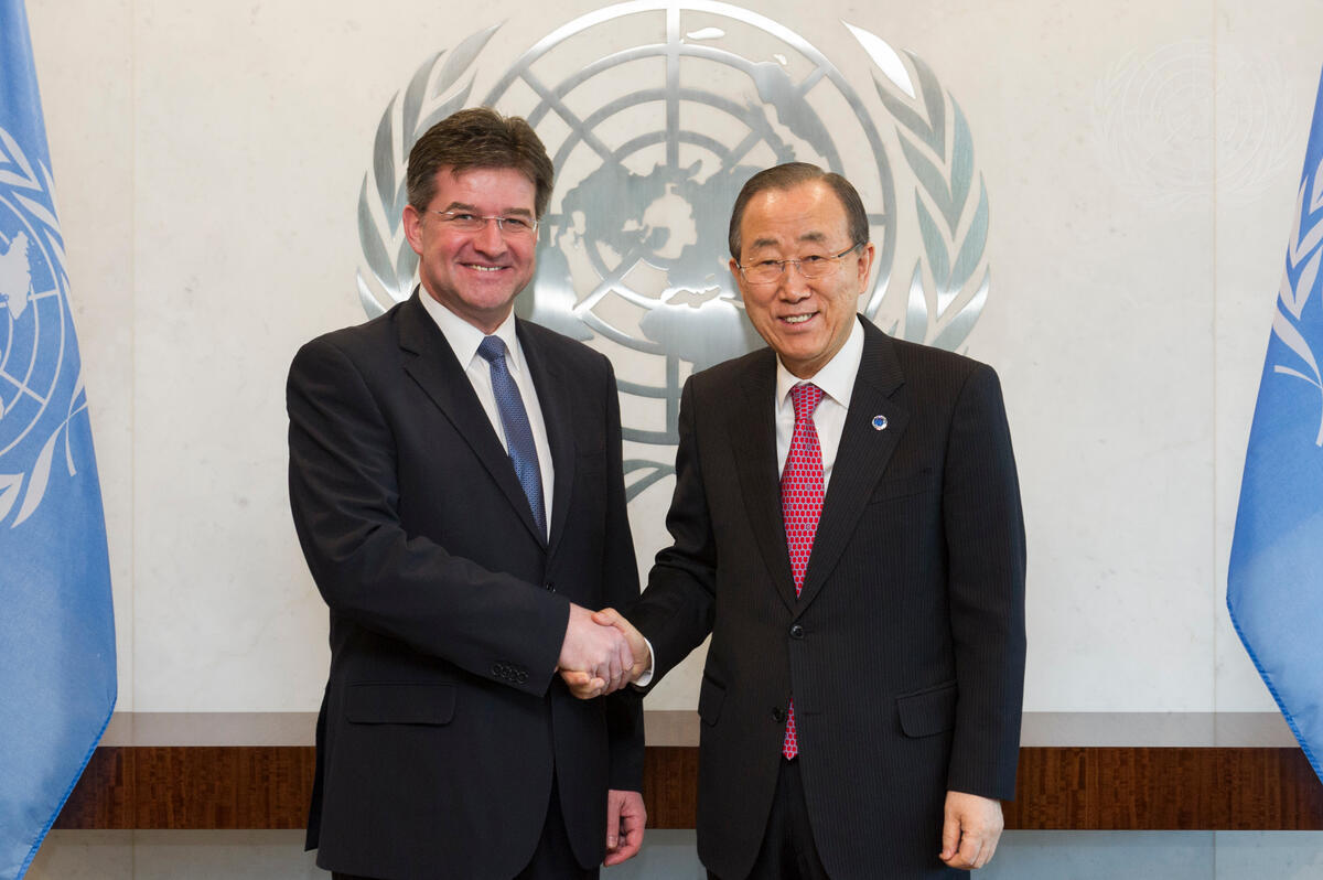 Secretary-General Ban Ki-moon (right) meets with Miroslav Lajcák, Deputy Prime Minister and Minister for Foreign and European Affairs of the Slovak Republic.