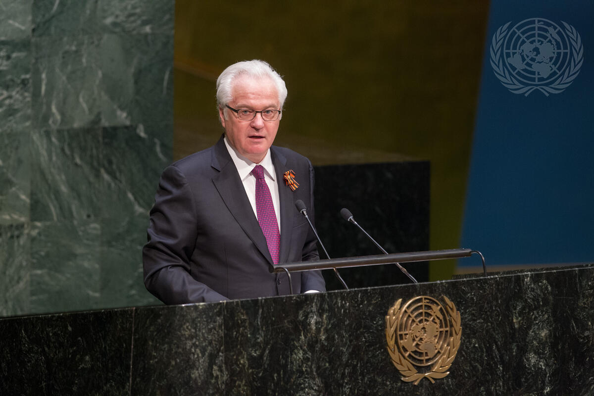 Vitaly I. Churkin, Permanent Representative of the Russian Federation to the UN, addresses the Assembly.