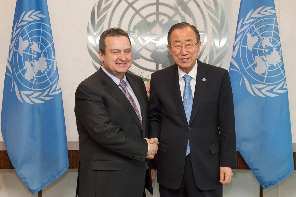 Secretary-General Ban Ki-moon (right) meets with Ivica Dacic, First Deputy Prime Minister and Minister for Foreign Affairs of the Republic of Serbia, in his capacity as and Chairperson-in-Office of the Organization for Security and Co-operation in Europe (OSCE).