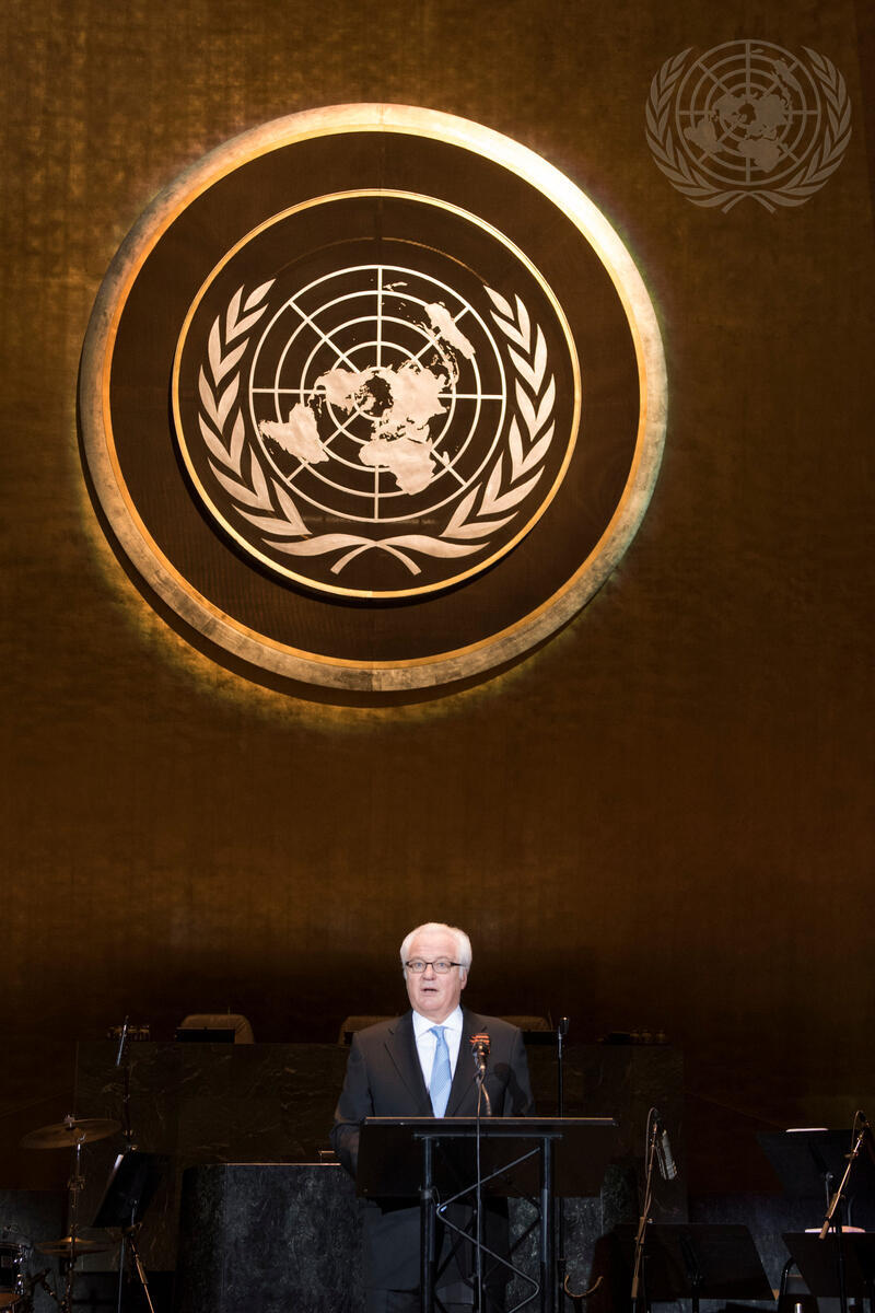 Vitaly I. Churkin, Permanent Representative of the Russian Federation to the UN, delivers remarks at the concert.
