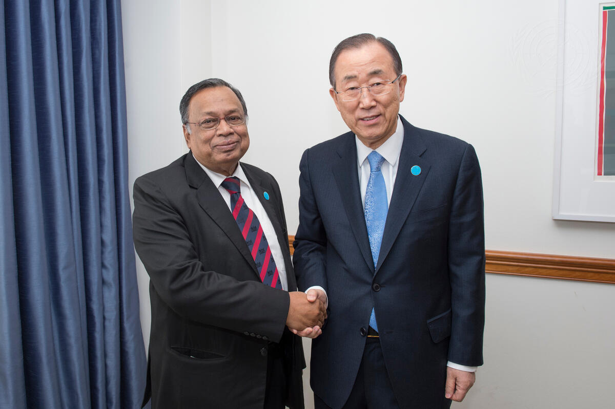 Secretary-General Ban Ki-moon (right) meets with Abul Hasan Mahmood Ali, Minister for Foreign Affairs of the People’s Republic of Bangladesh, in Washington, D.C.