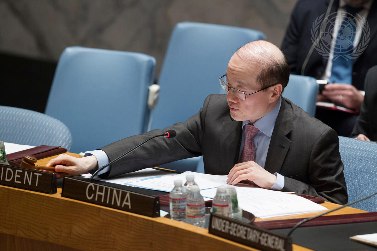 Liu Jieyi, Permanent Representative of the People’s Republic of China to the UN and President of the Security Council for the month of February, chairs the Security Council meeting on the situation in the Middle East, including the Palestinian question.