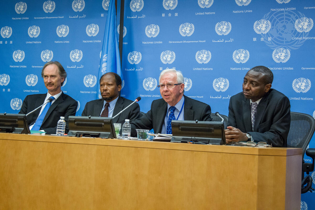 From left: Geir O. Pederson, Permanent Representative of Norway to the UN and co-facilitator of the preparatory process for the third International Conference on Financing for Development; George Talbot, Permanent Representative of Guyana to the UN and co-facilitator of the preparatory process; Pertti Majanen, Co-Chair of the Committee of Experts on Sustainable Development Financing; and Mansur Muhtar, Co-Chair of the Committee of Experts and World Bank Executive Director for Nigeria, Angola, and South Africa.