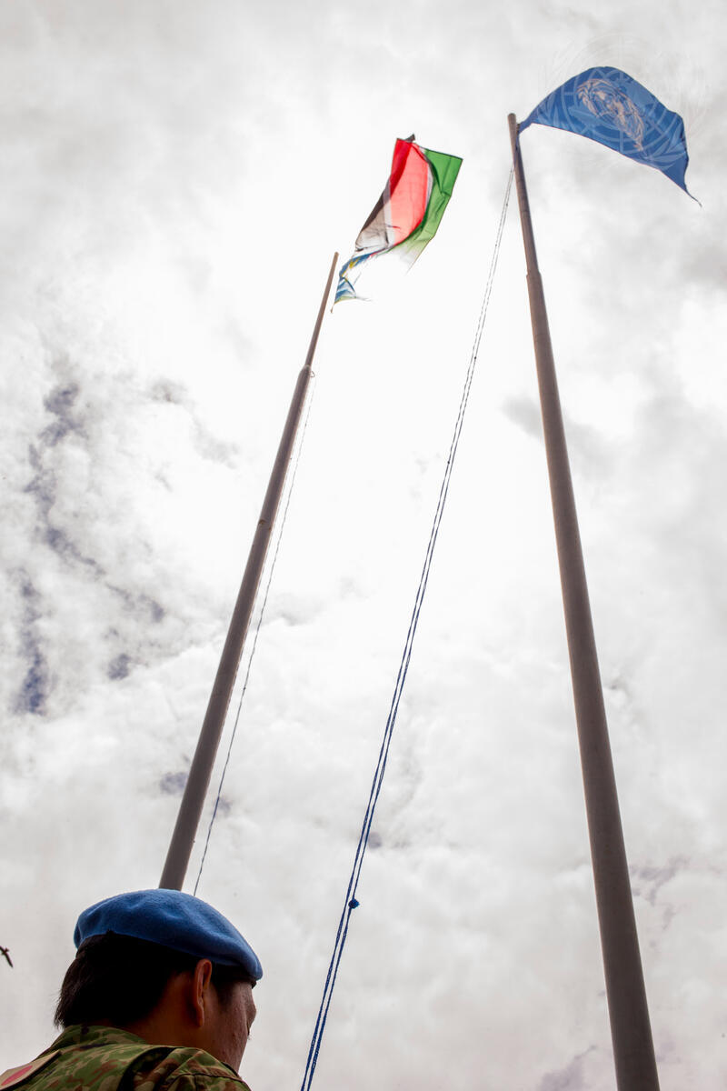 The flags of the UN and South Sudan fly high during celebrations commemorating United Nations Day (24 October) in Juba by the UN Mission in South Sudan (UNMISS).